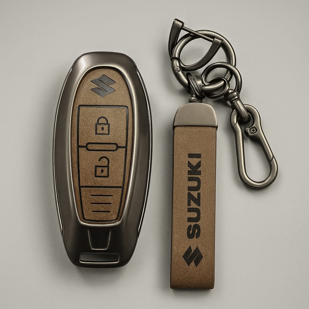 Suzuki Metallic Key Case – Elegant & Durable Design with Premium Hook & Ring Attachment