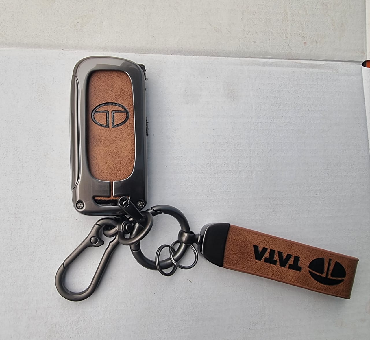 Tata Metallic Key Case – Elegant & Durable Design with Premium Hook & Ring Attachment